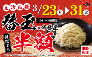 3/23㊊~生活応援📣替玉or半替玉半額✨